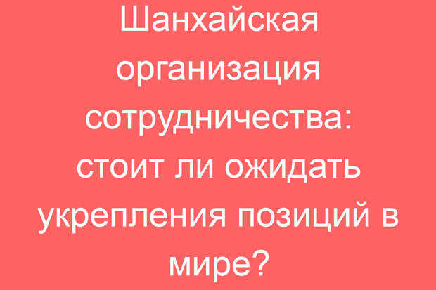 Статья Шанхайская организация сотрудничества: стоит ли ожидать укрепления позиций в мире? автора Екатерина Ларина была написана и впервые опубликована на сайте Бесарте.ру.
